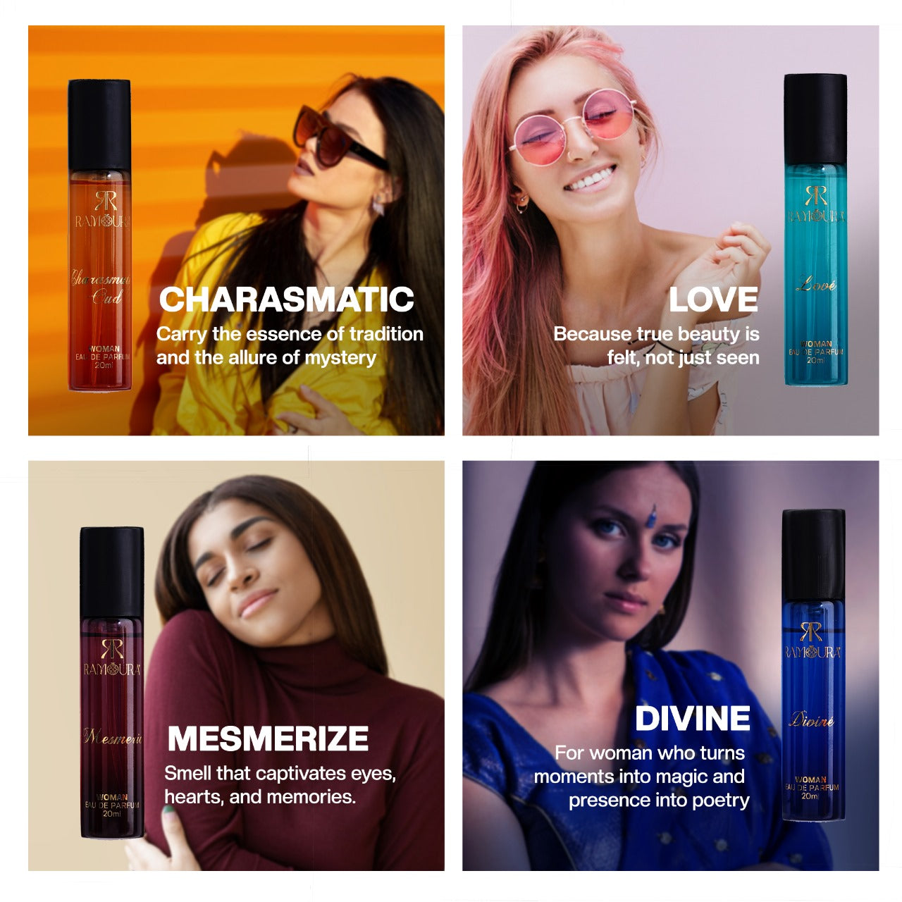 Divine – A heavenly fusion of Jasmine, Vanilla, and White Musk for a soft yet captivating signature.